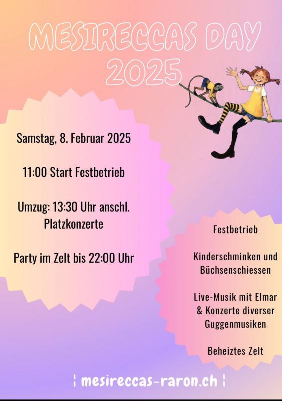 Ditz Jahr gits statt die alljährlich Mesireccas Night am 8. Februar 2025 en Mesireccas Day ufum Parkplatz Böimgärtu in Raron.