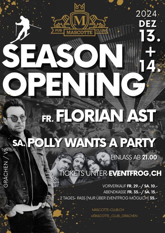Freitag, 13. Dezember: Erleben Sie einen unvergesslichen Abend mit Florian Ast, einem der bekanntesten Schweizer Musiker. Seine mitreißenden Songs und seine charismatische Bühnenpräsenz sorgen für eine fantastische Stimmung und einen perfekten Start in die Wintersaison.