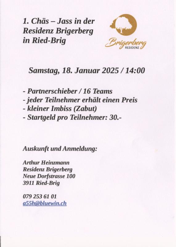 Treffpunkt: 13.30 Uhr, Torbogen, Burgschaft, vor Kollegium Spiritus Sanctus Brig