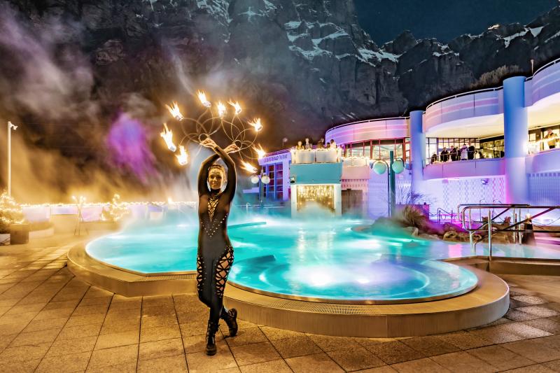 Aqua Mystica, ein mystisches Badeerlebnis mit einzigartigen Lichteffekten und musikalischem Klangteppich. Neben Wasser- und Feuershow kannst du an diesem Abend auch kleine Snacks und warme Getränke geniessen. Ein Wellness-Erlebnis, das dazu bestimmt ist, alle Sinne zu verzaubern.