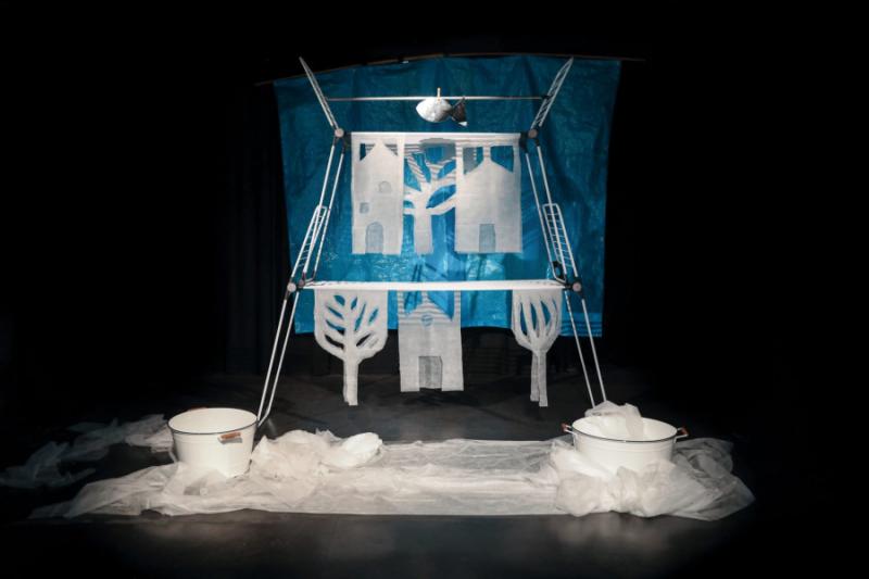 Zwei Wolkenwäscherinnen waschen sie, hängen sie wieder auf und verwandeln sie in Tiere, Bäume, Universen, wohl wissend, dass die Bestimmung dieser weißen Kreaturen das Meer ist, das sie wie eine große Mutter mit der Zärtlichkeit und Freude einer Heimkehr zu dem Ort, an dem alles geboren wurde, aufnehmen wird.