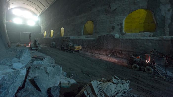 Châtelard: Weiterer Meilenstein für Nant de Drance03.03.2014, 11:34 Rund 200 Gäste versammelten sich auf der Baustelle in Châtelard, um den Abschluss dieser Ausbrucharbeiten zu feiern. Unter ihnen auch Bundesrätin Doris Leuthard. Nant de Drance zeige, dass man trotz der aktuell kritischen Lage auf dem Strommarkt investieren solle, wie die Bundesrätin betonte. Die Maschinenkaverne bildet das Herzstück des künftigen Kraftwerks. Insgesamt werden dort sechs Pumpturbinengruppen installiert. Mit einer Gesamtleistung von 900 Megawattstunden ermöglichen diese, innert kürzester Zeit grosse Mengen an Strom zu produzieren oder zu speichern. Die Inbetriebnahme des Kraftwerks soll Ende 2018 etappenweise erfolgen. Die Aktionäre von Nant de Drance investieren rund 1.9 Milliarden Franken in den Bau. Dank der hohen Flexibilität wird das Pumpspeicherkraftwerk in Zukunft eine wichtige Stellung auf den Schweizer und internationalen Strommärkten einnehmen. Davon überzeugt zeigen sich die Verantwortlichen. Die nächsten wichtigen Etappen bestehen in der Anlieferung der Elemente der ersten Stahlrohrleitungen, der Fertigstellung des zweiten Vertikalschachts und der Weiterführung der Arbeiten zur Erhöhung der Staumauer Vieux-Emosson./bu ![]() Bildquelle: zvg (Archivbild) ![]() Bildquelle: www.sdats.ch ![]() Bildquelle: mengis media ![]() Bildquelle: zvg ![]() Bildquelle: Leserreporter