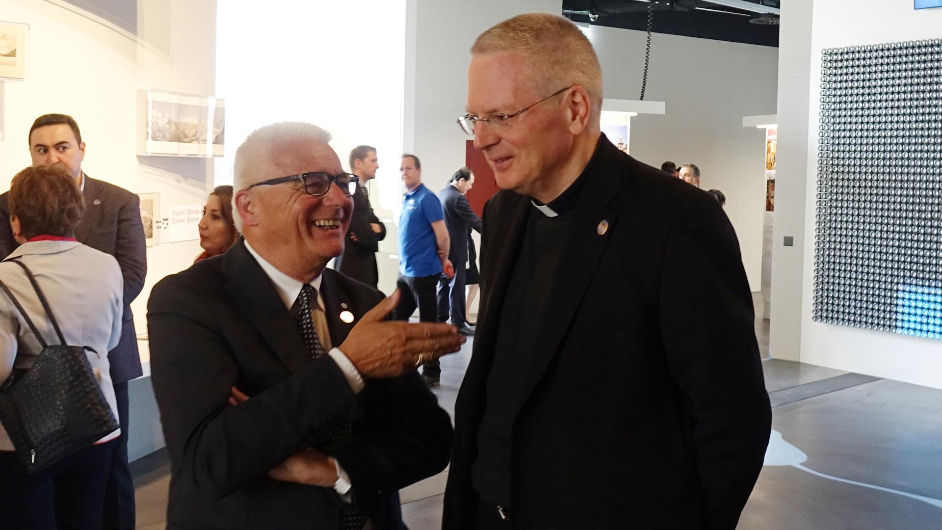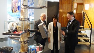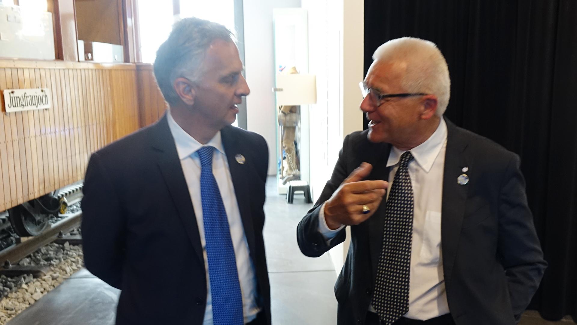 Naters: Die Welt zu Gast im Derfji10.05.2017, 19:27 Besonderer Ruhm für die Gemeinde Naters: Das World Nature Forum beherbergte am späten Mittwochnachmittag den diesjährigen Kulturanlass zu Ehren des diplomatischen Corps. Die Einladung, welche Bundespräsidentin Doris Leuthard im Namen des Bundesrats allen in der Schweiz akkreditierten ausländischen Botschaftern zukommen liess, ist fester Bestandteil des diplomatischen Veranstaltungskalenders. Kurz nach 16.20 Uhr trafen die ersten Diplomaten im World Nature Forum ein. Nach den Reden des Natischer Gemeindepräsidenten Franz Ruppen, jener von Staatsratspräsident Jacques Melly und Bundespräsidentin Doris Leuthard, ergriff Beat Ruppen, Geschäftsleiter des World Nature Forums, das Wort. Dabei machte er Werbung für die Region Jungfrau-Aletsch, betonte die Wichtigkeit des Wassers und spielte damit auf das ewige Eis und die grossen Wassermassen des Aletschgletschers an. Anschliessend führte Ruppen die rund 140 Diplomaten aus aller Welt durch die Ausstellung des World Nature Forums. Im Interview mit rro betonte Bundespräsidentin Doris Leuthard, dass sie schon bei der Eröffnung des Studien- und Kongresszentrums beeindruckt gewesen sei und sich vorgenommen habe, wiederzukommen: "Nun hat sich die Gelegenheit ergeben, dass ich dieses beeindruckende Zentrum auch den Botschaftern in der Schweiz zeigen kann." Auch Aussenminister Didier Burkhalter war beeindruckt: "Darauf kann Naters stolz sein", meinte er nach der Führung. Gemeindeoberhaupt Franz Ruppen war sichtlich stolz: "Als Präsident kann ich nicht jeden Tag 140 Diplomaten, einen Staatsratspräsidenten und zwei Bundesräte begrüssen. Für unsere Gemeinde ist das eine tolle Sache." In diesen Tagen ist Naters so etwas wie der politische Hotspot des Wallis. Nach der Visite der Bundesräte und der Diplomaten folgt am Freitag der Empfang des Grossratspräsidenten Diego Wellig./vm
