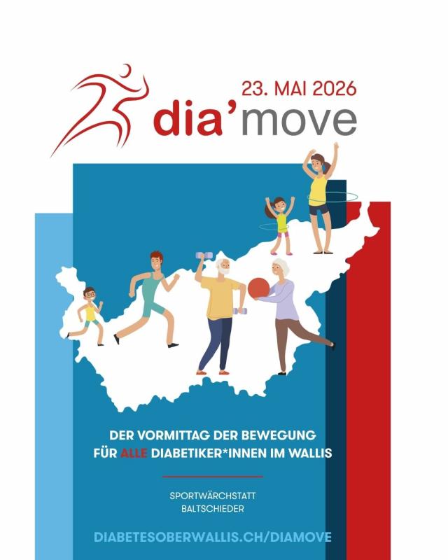 Egal, ob Sie bereits sportlich aktiv sind oder gerade erst damit beginnen, der Dia'Move Tag bietet Ihnen die Möglichkeit, verschiedene Sportarten auszuprobieren, neue Bewegungsmöglichkeiten zu entdecken, sich mit anderen auszutauschen, gezielte Tipps zu erhalten und zu verstehen, wie sich regelmässige körperliche Aktivität auf Ihren Diabetes auswirkt.