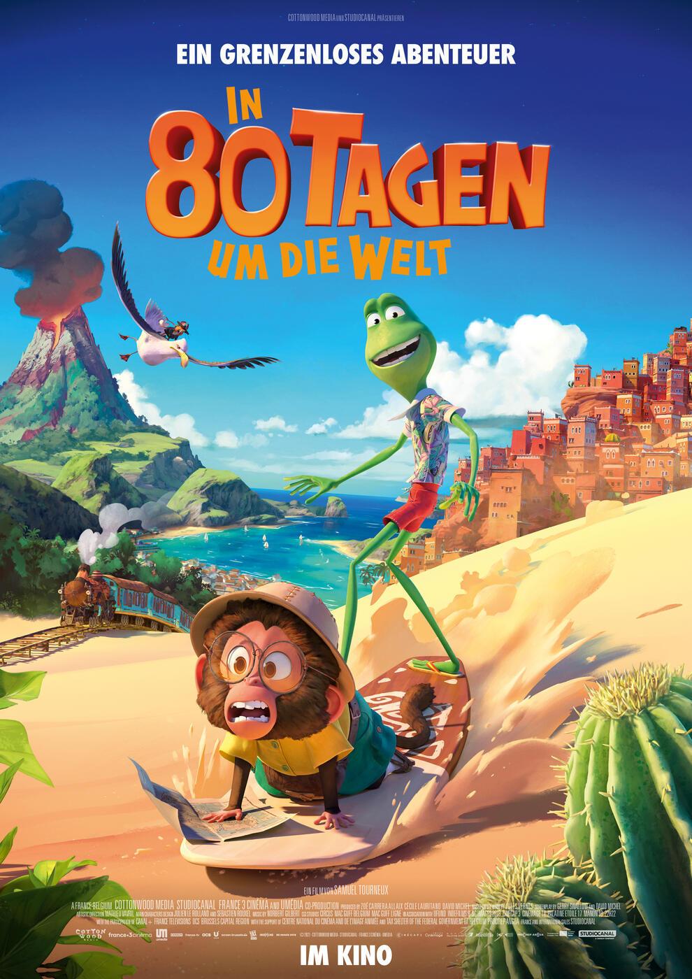 Der Oscar-nominierte Samuel Tourneux bringt gemeinsam mit ICE AGE 2 Autor Gerry Swallow den Abenteurerroman von Jules Verne - erstmals als Animation - auf die grosse Leinwand. Passepartout ist ein junges und gelehrtes Seidenäffchen, das schon immer davon träumte, ein Entdecker zu werden. Eines Tages kreuzen sich seine Wege mit Phileas, einem leichtsinnigen und gierigen Frosch. Gemeinsam gehen sie eine Wette ein, in 80 Tagen die Welt zu umrunden. Dem Gewinner winkt ein Preis von 10 Millionen Muscheln. Passepartout ergreift die Chance, endlich die Welt zu erkunden und begibt sich mit seinem neuen Freund auf ein verrücktes und aufregendes Abenteuer voller Wendungen und Überraschungen.
