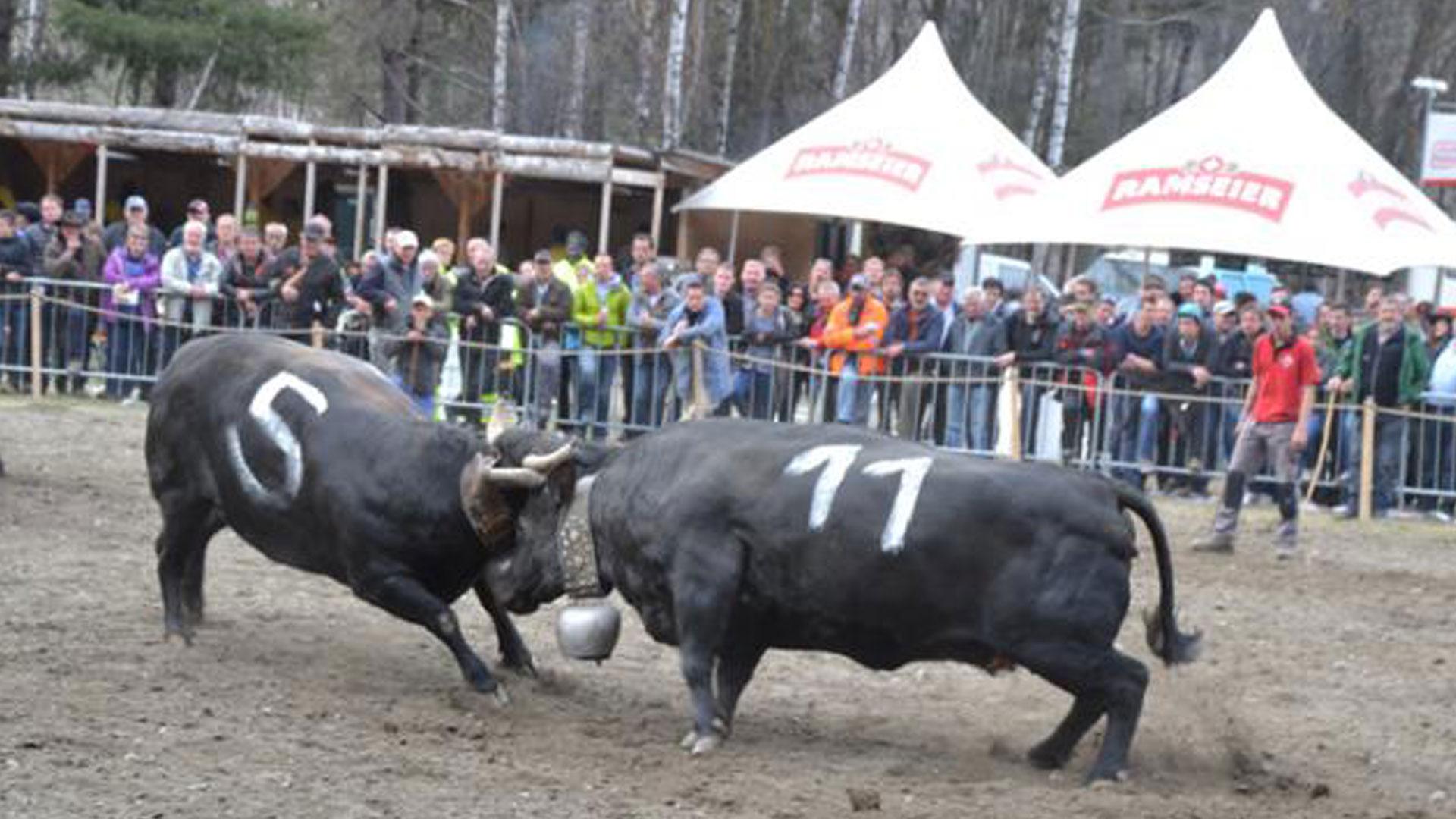Raron: Nach den Hasen kommen die Kühe11.04.2017, 17:07 Für einmal stehen in der Arena Goler in Raron nicht die Schwergewichte unter den Eringern im Ring. Denn am Vifra-Stechfest sind bloss Rinder, Erst- und Zweitmelken am Start. Dem Kampfniveau tut dies jedoch nichts ab. Im Gegenteil. Wehe, wenn sie losgelassen. Rund 200 Tiere sind für die letzte regionale Ausscheidung im Oberwallis eingeschrieben. Auch solche aus dem unteren Kantonsteil. Über die Hälfte davon steht zum ersten Mal in einer Arena. Sprichwörtliche Greenhorns also. Gemeint sind die Rinder. Und die haben Power. Wollen sich austoben. Dass es derart viele sind, hat einen Grund. Im Unterwallis gibt es heuer eine regionale Ausscheidung weniger als üblich. Damit sich dennoch genügend Tiere für das Nationale in Aproz qualifizieren können, haben die Organisatoren eine grössere Anzahl angenommen. Und ausnahmsweise dürfen sie diese denn auch in drei Gewichtsklassen einteilen. Gespannt sein können Züchter und Zuschauer aber auch auf die Kämpfe der Erst- und Zweitmelken. Denn darunter weilen geradeso ein paar ganz Böse. Das Vieh ist zum Teil also noch unerfahren. Dafür ist das Organisationskomitee geeicht. Sprich stechfesterprobt. Schliesslich zeichnet einmal mehr die Eringerviehzuchtgenossenschaft Inneres Nikolaital um Präsident Edi Brantschen für den Anlass verantwortlich. Und die Mannschaft hat es geschafft, die Dorfschaft von St. Niklaus zu begeistern. Sie erhält Unterstützung vom FC und der JO/SAC Zaniglas. Wenn am Ostermontag nun auch noch der Himmel lacht, kommt es im Goler in Raron einmal mehr zu einem Walliser Volksfest. Die Ausscheidungskämpfe beginnen um 9 Uhr./jm ![]() Bildquelle: zvg (Archivbild) ![]() Bildquelle: www.sdats.ch ![]() Bildquelle: mengis media ![]() Bildquelle: zvg ![]() Bildquelle: Leserreporter