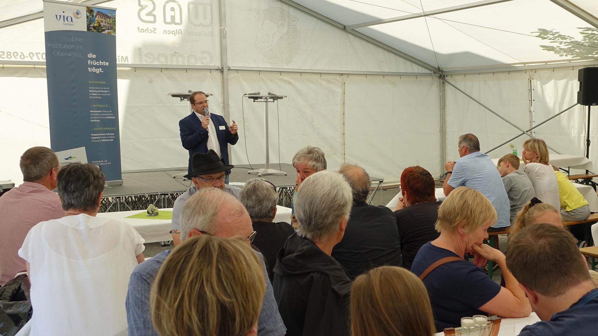 Gampel: Ein Einblick der besonderen Art16.06.2018, 12:14 Im Jahre 1992 noch ein Reha-Zentrum, heute ein im Oberwallis nicht mehr wegzudenkendes Behandlungszentrum für integrierte Suchttherapie – Via Gampel. Am Freitag öffnete diese Institution ihre Pforten: Unter anderen waren Staatsrätin Esther Waeber-Kalbermatten und mehrere Fachreferenten zu Gast. Am Samstag verfolgte Via Gampel das Ziel, der breiten Öffentlichkeit einen Einblick ins Alltagsleben der Institution sowie den damit verbundenen Herausforderungen zu bieten. Die Besucher konnten sich dank themenbezogenen Führungen durchs Haus ein eigenes Bild der Institution machen. Ein Stand rund um ambulante Beratung versorgte die Gäste mit Informationen. Ebenso konnten die Besucher Via-Gampel-Produkte erwerben, deren Erlös der Stiftung "Nachbar in Not" zugutekommt. Für das Wohl der jüngsten Gäste war auch gesorgt, ebenso wie für die musikalische Unterhaltung. Zu den besonderen Höhepunkten zählten am Samstag ein Pfeilbogenschiessen sowie ein Podiumsgespräch. Der Präsident des FC Sitten Christian Constantin, Ständerat Beat Rieder sowie der Leiter von Via Gampel Christian Rieder tauschten sich zum Thema "Sucht in der Gesellschaft" aus./mz