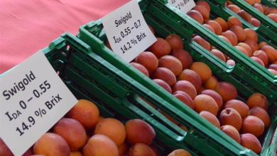 Châteauneuf: Neue Etappe im Bestreben nach Qualität19.08.2014, 09:14 Das Kompetenzzenrum für Obstbau der kantonalen Dienststelle für Landwirtschaft hat den Prototyp dieser Anlage in Zusammenarbeit mit der Universität Bologna entworfen. "Die Anlage rückt die Kompetenzen des kantonalen Obstbauamts auf dem Aprikosensektor in den Vordergrund", erklärt Staatsrat Jean-Michel Cina in der Sortierhalle der Landwirtschaftsschule Châteauneuf. Es handle sich auch um eine neue Etappe bei der Umsetzung einer kohärenten kantonalen Politik für dieses für das Wallis typische Produkt. Die neue Anlage sortiert die Aprikosen nach Reifegrad und Grösse. Der Reifeindex wird dabei auf der Grundlage der Wellenlänge des Chlorophylls festgelegt./ip ![]() Bildquelle: zvg (Archivbild) ![]() Bildquelle: www.sdats.ch ![]() Bildquelle: mengis media ![]() Bildquelle: zvg ![]() Bildquelle: Leserreporter