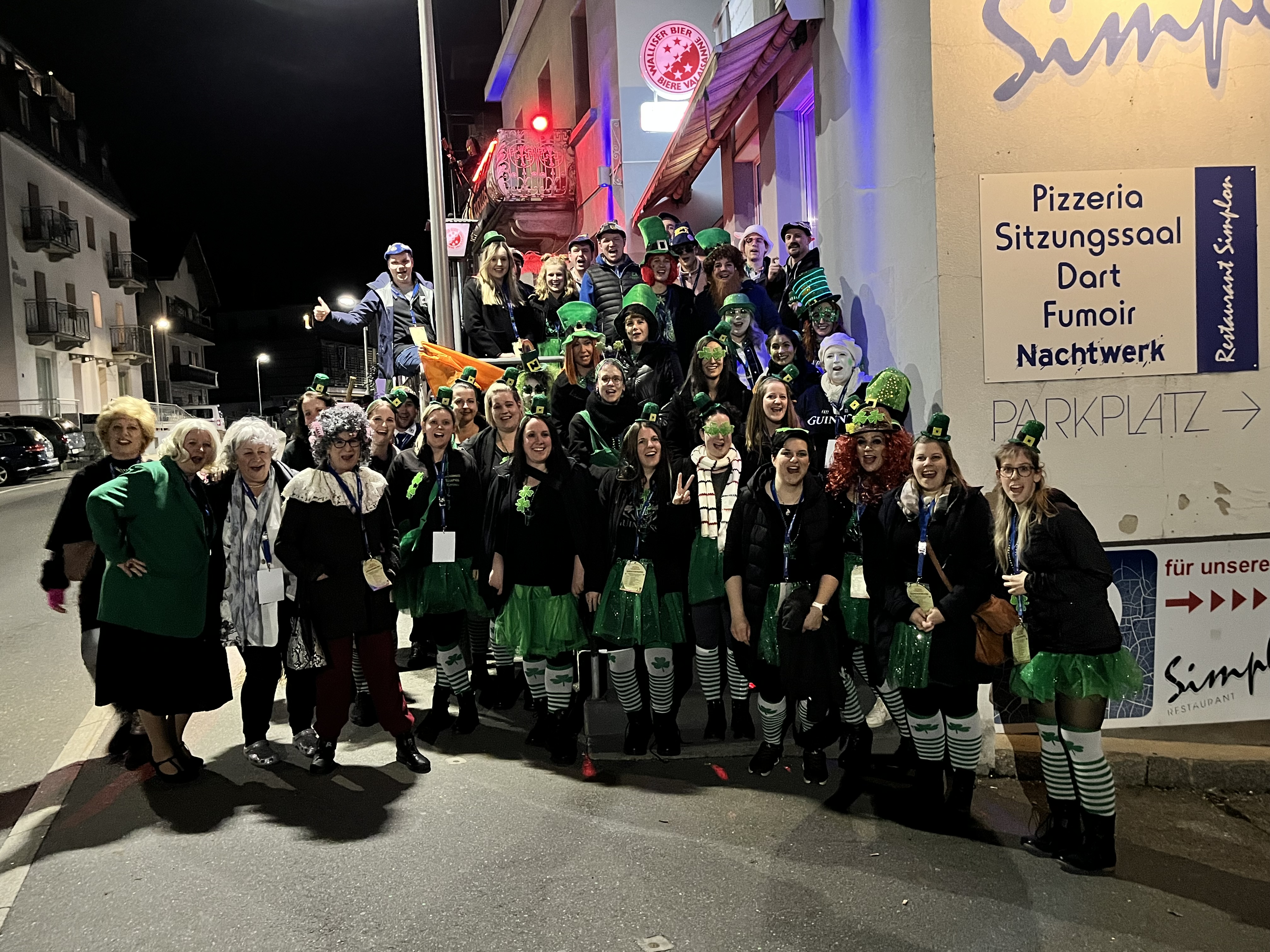 In den Drachenhöhlen treten verschiedene Schnitzelbankgruppen auf, bei denen man rechtzeitig in den Restaurants sein muss, damit man überhaupt noch Platz hat. Ein wunderschöner Abend mit lustigen Auftritten der einzelnen Gruppen.