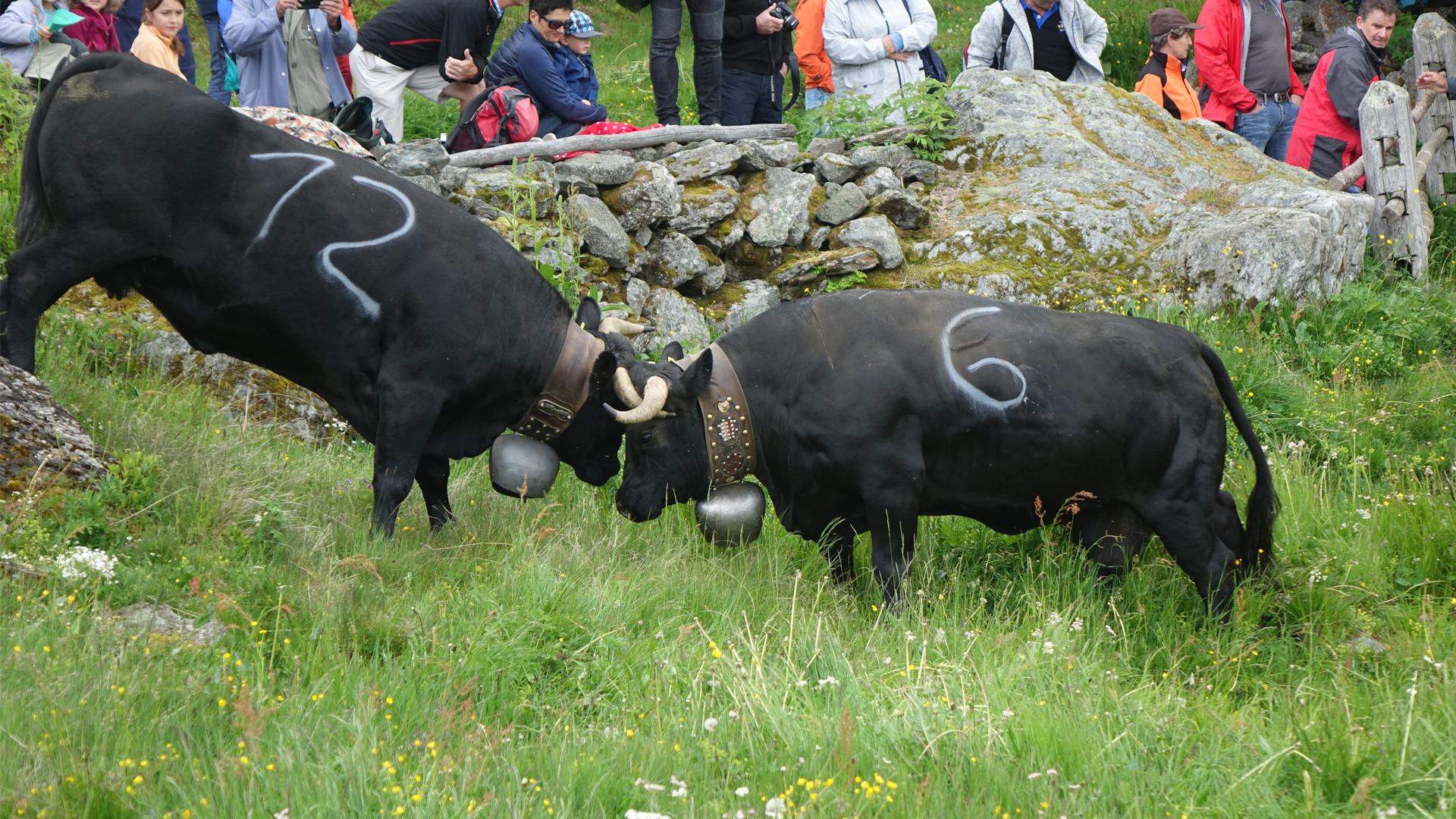 Ergisch/Eischoll: Familienfest der besonderen Art02.07.2016, 17:45 1800 Meter über Meer. Ein Paradies in den Walliser Bergen. Die Alpe Tschorr oberhalb von Ergisch/Eischoll. Traditionsgemäss beendet der Bsetztag auf der Alpe den langen Reigen der Alpaufzüge im Oberwallis. Aus etlichen Orten fanden sich Eringerzüchter ein, um eine erste Rangordnung unter den Tieren auszumarchen. Dabei kristallisierte sich vor allem eine Kuh heraus. Venta aus der Stallung Imboden aus Raron. Doch auch Nevada von Thomas Matter kreuzte ihre Hörner erfolgreich. Einen Namen hat sich jedoch auch Taifun gemacht. "Ich war sehr überrascht ob der Leistung meiner Kuh. Ich bin sehr stolz", sagte deren Besitzer, der St. Galler SVP-Nationalrat Toni Brunner. Er kaufte die 'Schwarze' letztes Jahr aus der Visper Stallung von Toni Williner. Am Samstag auf der Alpe Tschorr stellten die Eringerkühe beim Alpaufzug erstmals eine interne Hierarchie her. So kamen viele Besucher und Einheimische in den Genuss von vielen spannenden Kämpfen. Unter anderem war auch SVP-Bundesrat Ueli Maurer zugegen. "Ich feuere die Kuh von Toni Brunner an. Darüber hinaus verbringe ich im Wallis immer eine gute Zeit", sagte der Bundesrat. Er kam ausschliesslich mit Freunden auf die Alpe. "Nirgends auf der Welt kann sich ein Bundesrat so frei bewegen wie in der Schweiz. Ich bin ohne jegliche Leibwächter angereist." Maurer ist nicht nur ein Wallis-, sondern auch ein Bike Fan. Der Besuch auf der Alpe Tschorr lässt sich nämlich gut mit einer Wanderung oder auch mit einer Biketour verbinden. Belohnt wird diese Reise mit einer herzlichen Gastfreundschaft. "Ich freue mich jedes Jahr auf dieses Fest. Es stellt für mich eine Mischung aus Alpromantik und harten Kämpfen dar. Quasi ein feiner Mix aus Volksfest und Stechfest", sagt der Leiter des Alpbetriebs Oswald Andres. Für das leibliche Wohl sorgte an diesem Samstag der Fussballclub Eischoll. Nur das Wetter machte meist nicht mit. Regen und Sonne wechselten sich derart ab, dass sich der Festbetrieb immer wieder von Draussen ins Innere bewegen musste. Welche Kuh schliesslich als Alpköniging die Tschorr verlässt, wird sich Ende Sommer zeigen./aa ![]() Bildquelle: zvg (Archivbild) ![]() Bildquelle: www.sdats.ch ![]() Bildquelle: mengis media ![]() Bildquelle: zvg ![]() Bildquelle: Leserreporter