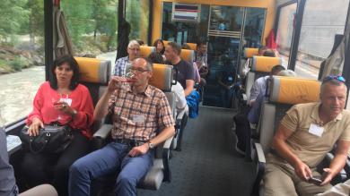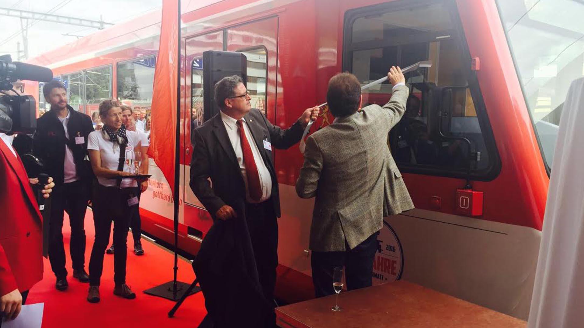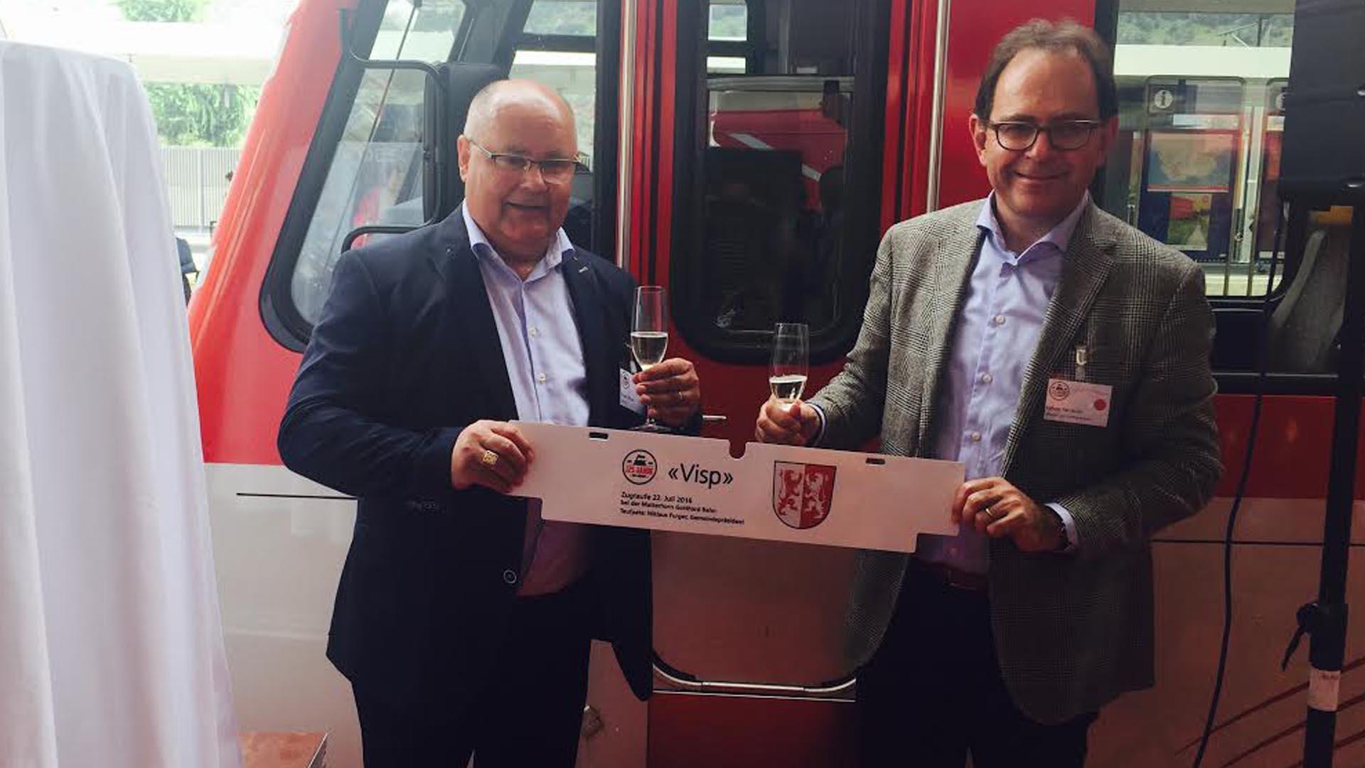 Visp/Zermatt: Ein Prosit auf 125 Jahre22.07.2016, 12:56 Es war der 18. Juli 1891. Damals fuhr der erste Zug von Visp nach Zermatt. 125 Jahre später fährt er immer noch und die Bahnstrecke ins Mattertal gehört zu den wichtigsten Zugverbindungen im Oberwallis. Rund 180 geladene Gäste feierten diesen Geburtstag am Freitag ordentlich. Nach der offiziellen Begrüssung durch die Vertreter der Matterhorn Gotthard Bahn am Bahnhof Visp stand bereits das erste Highlight des Tages auf dem Programm. Die Taufe von zwei neuen Lokomotiven. Die beiden Namen der Triebfahrzeuge lagen dann auch quasi auf der Hand. Sie heissen Visp und Zermatt. Täglich befördern diese nun Hunderte von Fahrgästen durch das Mattertal. Auch die Öffentlichkeit soll ein Teil dieser Jubiläumsfeierlichkeiten sein. Dies mit einem bunten und nostalgischen Unterhaltungsprogramm auf der Matterhorn Plaza in Zermatt. Die örtliche Band Winters Home sowie die Oberwalliser Musiker FAB4 spielen am Nachmittag zum Konzert auf, bevor am Abend dann der schweizweit bekannte Alpentainer Trauffer das Matterhorndorf zum Kochen bringt./bj