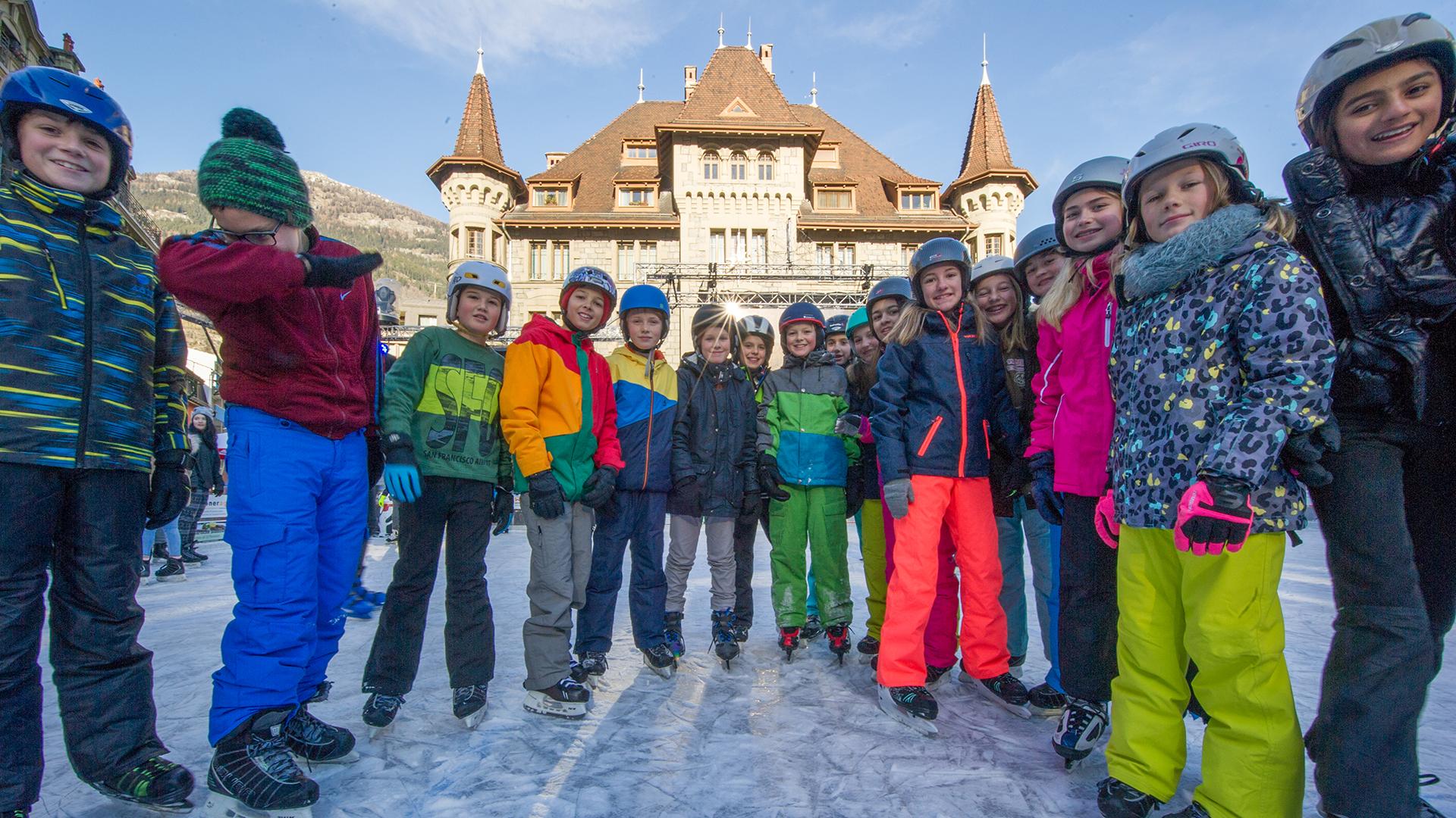 öffentliches Eislaufen für alle , halbes Eisfeld mit Stock