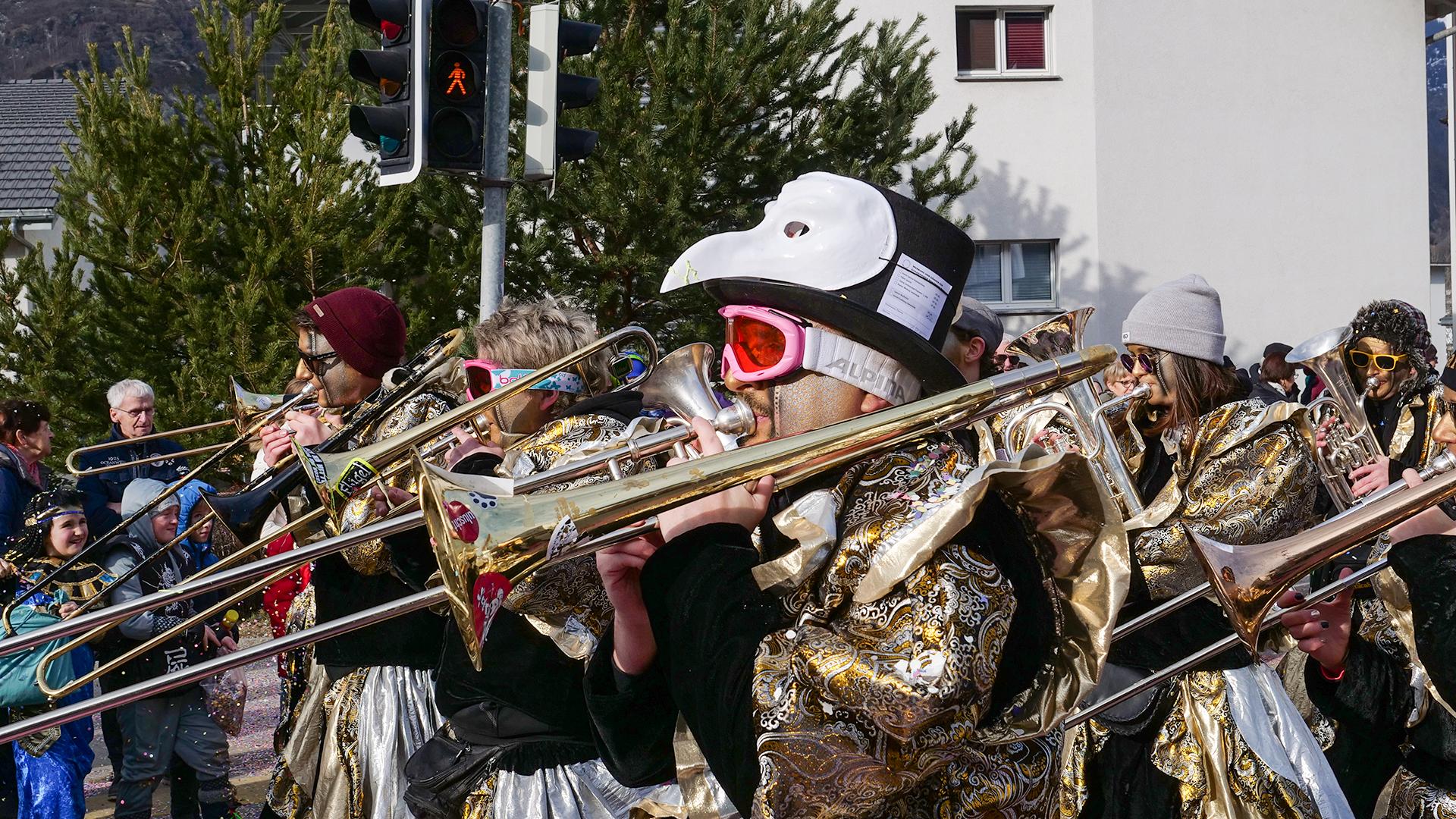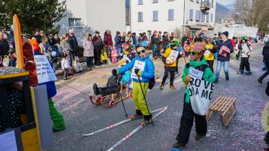 Mit dabei sind Guggenmusiken, Schülerinnen und Schüler, Vereine, Fasnachtsgesellschaften und viele kostümierte Einheimische, die gemeinsam den Winter vertreiben und die fünfte Jahreszeit feiern.