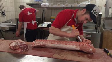 Raron: Wo sind bloss die Metzgerlehrlinge?29.01.2016, 12:22 Hauswürste, Aufschnitt, Speck, Trockenfleisch und Rohschinken gehen über den Ladentisch. Und diverse Fleischsorten liegen in der Verkaufsvitrine. Teilweise mariniert. So sieht es für gewöhnlich in den Läden der Metzgereien aus. Doch was läuft hinter den Kulissen? rro hat am Freitag mit Metzgermeister Heinz Arnold in dessen Betrieb in Raron Frühschicht geschoben. Diese beginnt täglich zwischen vier und sechs Uhr. "Ich präpariere, portioniere und schneide die Waren für die Theke. Dann teile ich die bevorstehenden Dienste den jeweiligen Mitarbeitern zu. Und zusätzlich informiere ich mich am frühem Morgen in den Medien, ob es neue Geschichten rund um das Fleisch gibt", erklärte Heinz Arnold. Somit könne er stets gut vorbereitet und informiert den Kunden gegenüberstehen. Während des Morgeneinsatzes in der Metzgerei durfte rro beim Wursten Hand anlegen. "Unsere Hauswürste bestehen aus Fleisch, Speck und Gemüse. Für den Geschmack fügen wir ein wenig Wein dazu", gibt Arnold preis. Der Metzgerberuf biete grundsätzlich ein breites und interessantes Fachgebiet. Nur leider sei die Nachfrage nach entsprechenden Lehrstellen sehr gering. "Im laufenden Lehrjahr hat nicht eine einzige Person die Ausbildung zum Metzger begonnen. Das ist auch der Grund, warum die Berufsschule dieser Gattung vorübergehend nach Bern gezogen ist", bedauert Arnold./vs