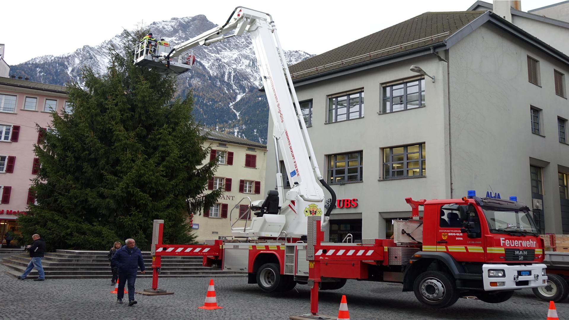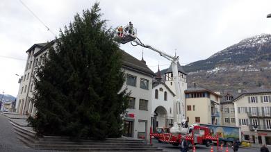 Brig-Glis: Es weihnachtet schon17.11.2016, 12:11 In gut einem Monat ist es wieder soweit. Die Weihnachtszeit, die besinnlichste Zeit des Jahres, steht vor der Tür. In Momenten, an denen die Leute zur Ruhe finden, dürfen aber auch die passenden Lichter nicht fehlen. Sich dessen bewusst, schmückt auch Brig-Glis die Stadtgemeinde aus. Am Donnerstag war der heuer 14 Meter hohe Tannenbaum an der Reihe. Mitarbeiter der Stützpunktfeuerwehr sowie der Stadtgärtnerei Brig-Glis arbeiten an der Zierung des 3700 Kilogramm schweren Riesen. "Für dieses Jahr haben wir kein spezielles Motto", erklärt Stadtgärtner René Werlen. Wir möchten aber etwas Buntes machen mit neuen Weihnachtskugeln. Der Baum steht über die Weihnachtszeit bis zum Montag nach dem Dreikönigstag. Danach zerhäckseln die Verantwortlichen das gute Stück und machen es bereit für die Weiterverarbeitung./id ![]() Bildquelle: zvg (Archivbild) ![]() Bildquelle: www.sdats.ch ![]() Bildquelle: mengis media ![]() Bildquelle: zvg ![]() Bildquelle: Leserreporter