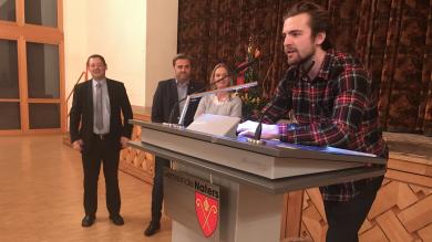 Naters: Ein Derfji feiert sich und seine Helden01.01.2018, 20:16 Genau ein Jahr ist es her, als die Bevölkerung von Naters ihren neugewählten Präsidenten mit tosendem Applaus willkommen hiess. Franz Ruppen nahm seine neue Aufgabe mit Elan in Angriff. Und auch ein Jahr später ist er kein bisschen amtsmüde. Der Natischer Präsident will auch in Zukunft mit sehr viel Herzblut und Engagement die Zukunft der Gemeinde mitgestalten. "Es war ein sehr intensives Jahr. Im Gemeinderat haben wir punktgenau 1000 Traktanden behandelt." Die vergangenen zwölf Monate seien arbeitsintensiv, aber sehr schön gewesen, resümierte der Gemeindepräsident am Neujahrsempfang am Montagabend im Zentrum Missione. Doch auch ein Blick in die Zukunft fehlte nicht. Im Fokus stehen diesbezüglich unter anderem die Feierlichkeiten zum 1000-Jahr-Jubiläum. Und so schloss Ruppen seine Ansprache mit dem Zitat: "Mehr als die Vergangenheit interessiert mich die Zukunft, denn in ihr gedenke ich zu leben." Nach dem Neujahrskonzert der Musikgesellschaft Belalp und der Ansprache des Gemeindepräsidenten erhielten Luca und Nico Hischier den Sportpreis der Gemeinde Naters. Im Anschluss liessen alle Anwesenden den Abend gemütlich bei Polenta und Ragout ausklingen./ip ![]() Bildquelle: zvg (Archivbild) ![]() Bildquelle: www.sdats.ch ![]() Bildquelle: mengis media ![]() Bildquelle: zvg ![]() Bildquelle: Leserreporter