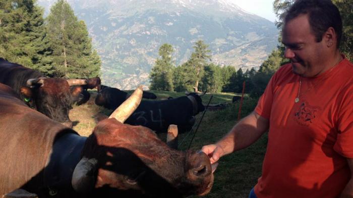 • Ivan Zurbriggen begrüsst in Gspon die Eringerkühe. Quelle: rro