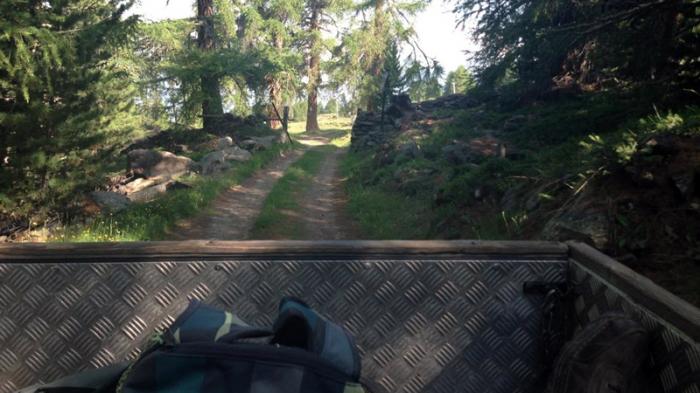 • Geschüttelt - nicht gerührt: Die Fahrt im Pickup oberhalb von Gspon. Quelle: rro