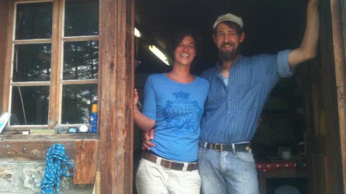 • Verbreiten gute Laune: Senn Anton Ammann und Gehilfin Sandra Meloni in der Sennerei auf der Stafelalp. Quelle: rro