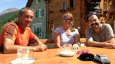 Saas-Grund: Wo man sich 'trifft'15.07.2013, 07:35 Auf der Triftalp wird der Käse noch wie vor 150 Jahren gemacht. Über offenem Feuer und in einem rustikalen Kessel entstehen die Köstlichkeiten. Neben 12 Milchkühen beheimatet die Triftalp auch 30 Eringer. Das Personal ist bunt durchmischt./zy