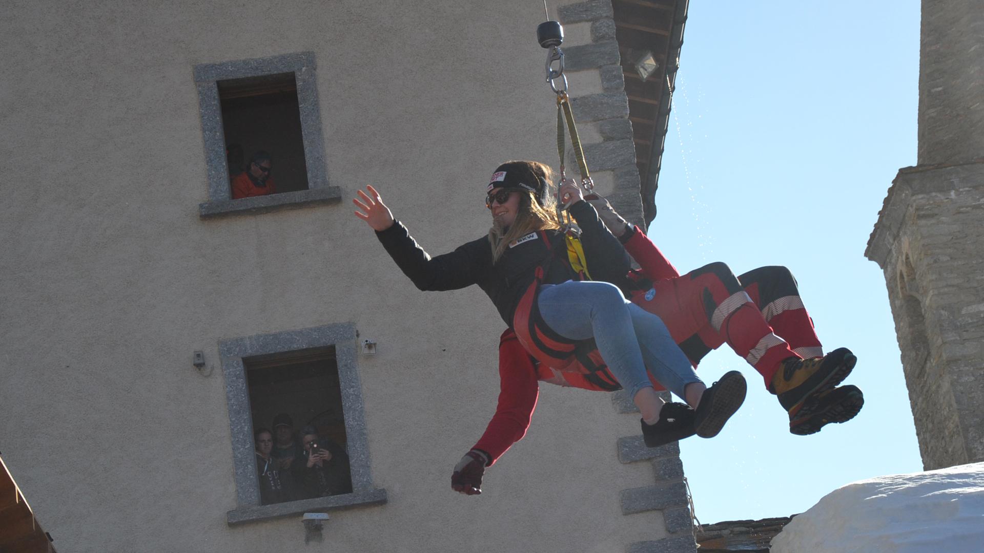 Grächen: Eröffnungsfeier des Grand Prix Migros mit viel Prominenz06.04.2018, 19:13 Das Oberwallis lädt zum Grand Prix Migros Finale 2018 ein. An diesem Wochenende kämpfen 750 Kinder und Jugendliche um den begehrten Sieg am grössten Jugendskirennen der Welt. Und dieser ist begehrt, schliesslich haben schon Stars wie Wendy Holdener, Beat Feuz oder Lara Gut darum gekämpft. Der Start zum Grand Prix Migros Wochenende erfolgte mit der Eröffnungsfeier auf dem Dorfplatz in Grächen. Von drei verschiedenen Richtungen kamen die Fahrer der drei Interregionen mit musikalischer Begleitung auf den Dorfplatz. Hier führte SRF Star-Moderator Rainer Maria Salzgeber durch das Programm der Eröffnungszeremonie. SRG-Präsident Jean-Michel Cina und der Präsident von Swiss-Ski, Urs Lehmann, stimmten die jugendlichen Skitalente auf die Rennen ein. Als Überraschung kam die Weltcupfahrerin Melanie Meillard zur Eröffnungsfeier. Sie wurde mit einem Rettungshelikopter der Air Zermatt eingeflogen und auf den Dorfplatz abgeseilt. Die zurzeit verletzte Fahrerin gab anschliessend eine Autogrammstunde. Am Samstag erfolgt der Start der ersten Rennen um 9 Uhr. Die Preisverteilung ist um 15.30 Uhr im Village auf der Hannigalpe./en