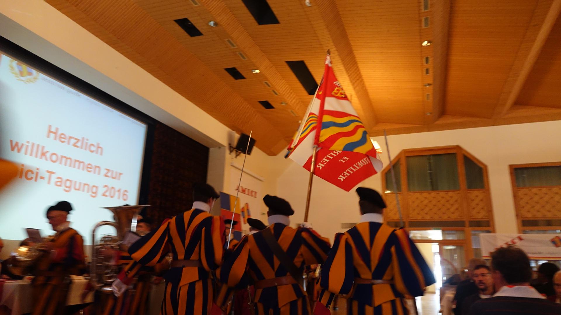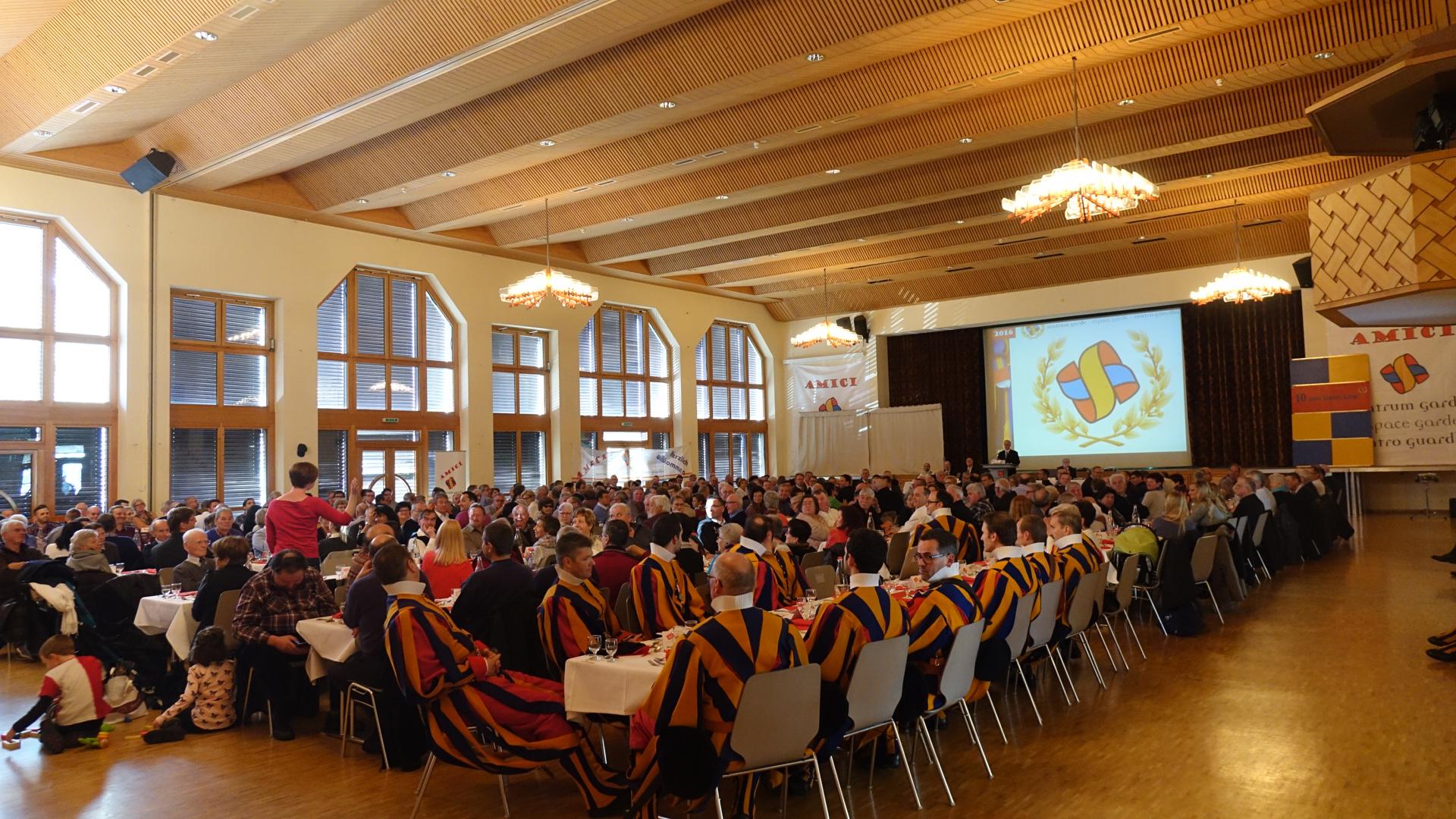 Naters: Gardemuseum als Publikumsmagnet12.11.2016, 15:31 Noch zu Zeiten des Kalten Kriegs war sie streng geheim: Die 1939 erbaute Festung oberhalb von Naters. Wer dort seinen Militärdienst leistete, durfte nichts verraten. Alles war geheim. Mittlerweile haben sich die Zeiten gewaltig verändert. Die Sowjetunion ist seit einem Vierteljahrhundert Geschichte und die einst strenggeheime Festung beherbergt seit zehn Jahren das weltweit einzige Museum der Päpstlichen Schweizergarde für welches sich die Stiftung Garde mit der Amicivereinigung verantwortlich zeigt. Humorvoller Obmann Am 11. November 2006 eröffnete die damalige Bundespräsidentin Micheline Calmy-Rey das Gardemuseum. Tony Jossen, Obmann der Amicivereinigung und ehemaliger Vizekommandant der Päpstlichen Schweizergarde, hat die Vorbereitungsarbeiten und anschliessende Eröffnung des Gardezentrums hautnah miterlebt, wie er gegenüber rro betonte. "Die Festung war so geheim, selbst ich als Oberst wusste davon nichts. Glücklicherweise kaufte 2005 die Gemeinde Naters die Einrichtung und wir konnten bereits ein Jahr später das Museum eröffnen." Seither sind zehn Jahre vergangen und die Amicivereinigung ist gut unterwegs. Bei der Jubiläumsfeier der Vereinigung im Natischer Zentrum Missione zeigte sich, dass das Gardemuseum und die Amicivereinigung in der Region und der gesamten Schweiz bestens verankert sind. Das Zentrum Missione war bis auf den letzen Platz gefüllt. Amiciobmann Tony Jossen konnte ausserdem zahlreiche Vertreter aus der Lokalpolitik und der Kirche begrüssen. Sogar der amtierende Gardekommandant Christoph Graf fand den Weg nach Naters und nahm an der Jubiläumsfeier teil. Auch der gebürtige US-Amerikaner Thomas Eduard Gullickson, der in Bern als päpstlicher Botschafter tätig ist, war mit von der Partie. Tony Jossen erlaubte sich bei der Ansage des päpstlichen Botschafters einen kleinen Scherz als er sagte: "Ladies and Gentleman, dear friends. Please welcome with me the new President of the United States of America. Oh, my God! Wenn wir gekonnt hätten, hätten wir Sie gewählt." Gullickson nahm es mit Humor und erklärte, dass er gerne unter den Amici weile. Wie Jossen an der Jubiläumsfeier erklärte, sind im vergangenen Jahr 16 Stifter und 73 neue Amici zur Vereinigung dazugestossen. Damit hat die Amicivereinigung nun über 900 Mitglieder. Jossen hofft, dass er und seine Vorstandskollegen schon bald das 1000. Mitglied begrüssen können. An der Jubiläumsfeier wurde ausserdem Martino Karlen in den Vorstand gewählt. Dieser enthüllte während der Jubiläumsfeier dann auch die beiden Gemälde Flucht zur Engelsburg und Johannes Paul II, welche nun in der Sala Guardia als Ergänzung zum Gardemuseum hängen. Im Saal hängt schon das Gemälde Sacco di Roma. Die nächste Jahresversammlung der Amici wird am 11. November in Naters sein. Bis dahin werden sicherlich noch viele Besucher durch das Gardemuseum laufen. In den letzten zehn Jahren waren es über 40'000./vm ![]() Bildquelle: zvg (Archivbild) ![]() Bildquelle: www.sdats.ch ![]() Bildquelle: mengis media ![]() Bildquelle: zvg ![]() Bildquelle: Leserreporter