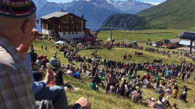Blatten/Belalp: Sommerspiele auf 2000 Metern über Meer07.08.2016, 11:05 Mehr Authentizität geht kaum. Einheimische und Gäste kommen am Sonntag auf der Belalp in den Genuss von einem Stück Walliser Tradition. Das Sommerstechfest - abermals ein Publikumsmagnet. Und dies natürlich nicht nur wegen der imposanten Kulisse. Bereits vor dem offiziellen Start der Kämpfe lag eine ganz besondere Stimmung in der Luft. Und in den Gesichtern der Züchtern war nicht nur eine gewisse Anspannung, sondern auch ganz viel Vorfreude sichtbar. Bei herrlichem Wetter können die Besucher spannende Kämpfe in der Arena bei der Bergstation der Gondelbahn geniessen. Petrus ist wohl ein Natischer Glückliche Gesichter auch beim VIP-Apéro zu Beginn der Veranstaltung. Und bei weitem sind nicht nur die Kämpfe in der Arena Thema. Bei sommerlichen Temparturen ist durchaus bereits der Herbst im Gespräch. Und manch ein Politiker schüttelt wohl gerne einmal mehr Hände. Freudiges Schulterklopfen rund um OK-Präsident Aron Pfammatter. "Das Wetter ist perfekt. Die Stimmung könnte nicht besser sein." Und so strahlt auch Pfammatter mit der Sonne um die Wette. Doch auch die Vorarbeiten standen unter einem guten Stern. "Der Viehtransport auf die Chiematte verlief reibungslos." Bereits am Freitag hätten sich manche Züchter schon die 'besten' Plätze für ihre Tiere gesichert. Und so spricht Pfammatter auch ein grosses Danke an diese aus. "Damit diese Tradition mit ihrer inzwischen ausgesprochen touristischen Wirkung aufrechterhalten werden kann, braucht es eben diese Züchter, welche tagein tagaus mit viel Hingabe und Ausdauer für ihre Tiere sorgen." Die Rindviehversicherung Birgisch organisiert das diesjährige Sommerstechfest. Zusammenführen, abführen ... Abseits der Arena geniessen die Zuschauer feinen Walliser Wein. Ein Raclette darf natürlich nicht fehlen. Gemütliches Beisammensein. "Für mich gehört so ein Stechfest absolut zur Schweizer Tradition, wie auch das Schwingen", freut sich Stephan Bergamin aus Zürich. Und schwärmt dabei nicht nur von den schönen Eringerkühen. "Bei uns kennt man Wörter wie Scharren oder Zusammenführen eher vom Ausgang." Na dann: Prost und viel Erfolg./ip